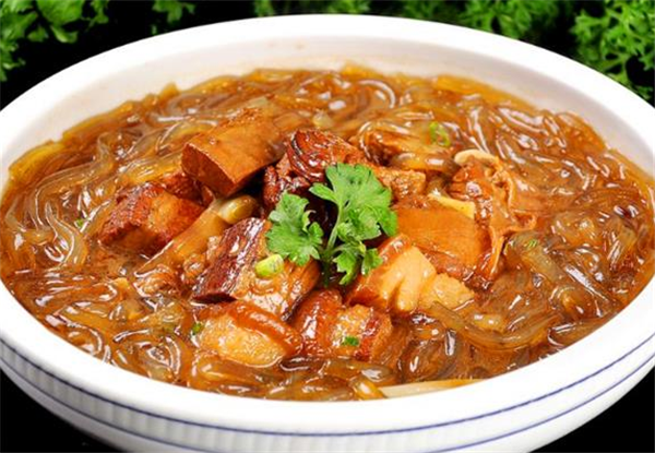 4、猪肉炖粉条,武隆苕粉是零添加健康产品,坚持只用当地核心产区的仙女红武隆红宝石红薯,经过3沉3淀,16道工艺匠心制作而成。猪肉炖粉条可以说是武隆人待客必选菜,腊肉的香糯加上粉条的韧劲,相信武隆的这道特色菜绝对可以征服你的味蕾。