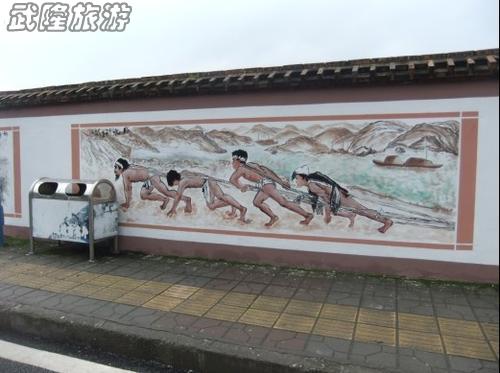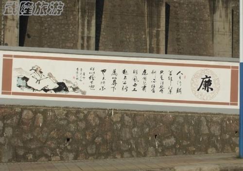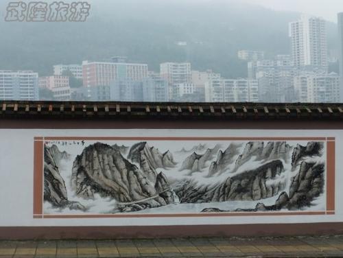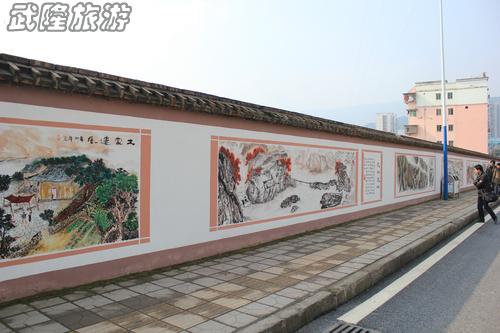 在武隆县火车站至三桥段道路两旁,以前道路两旁光秃秃的围墙已被用绘画、书法的形式渲染上了丰富多彩的武隆文化,包括武隆历史文化、地方民俗民情及优秀澳网官方网站景点。