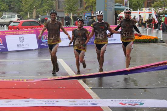 经过越野跑、抬滑竿、骑跑交替、山地车四个比赛项目,历程11公里,在观众们的欢呼声中,来自新西兰、芬兰的探路者队最先到达终点,他们以42分51秒的好成绩勇夺第一,获得了黄色领跑衫。新西兰队和美国队分别以43分3秒、43分54秒的成绩夺得了第二、三名。