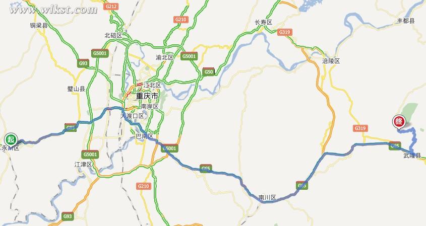 上成渝高速(重庆方向)——到达重庆,在西环立交桥处向右进入内环——到巴南区,在南环立交桥处进入渝湘高速(包茂高速)——武隆服务区下道——转盘处向右进入武仙路直达仙女山。