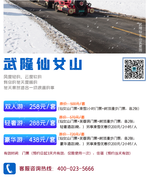漫天飞雪马上到,武隆仙女山“惠玩”季提前开启。即日起至2022年2月27日,武隆景区将推出多种自驾优惠套票: