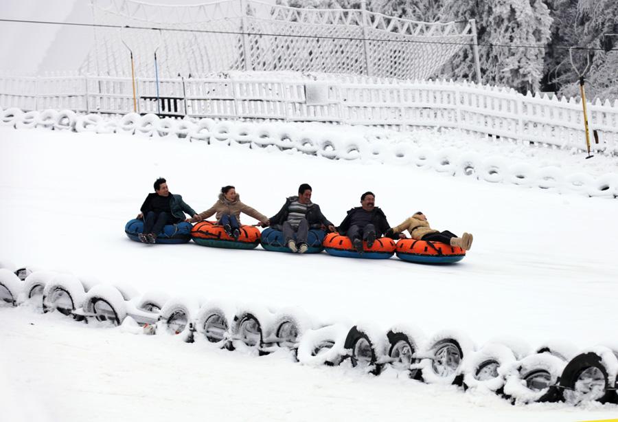 仙女山主要的滑雪项目时滑雪橇、雪上飞碟、滑雪船