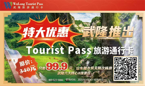 山东籍市民,只需99.9元(含仙女山、天生三桥、芙蓉洞、芙蓉江、龙水峡地缝、白马山天尺情缘景区门票),2025年即可无限次进入景区。