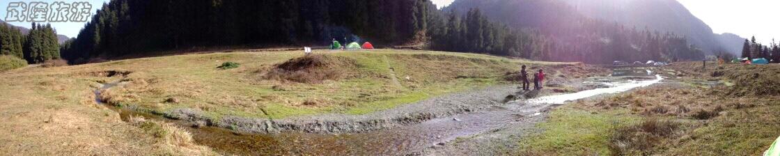 听老板说后面还有一些人要来,我们赶紧去挑选露营地。在一条溪沟旁边,有一块平整的草地,我们立马占据有利地形。