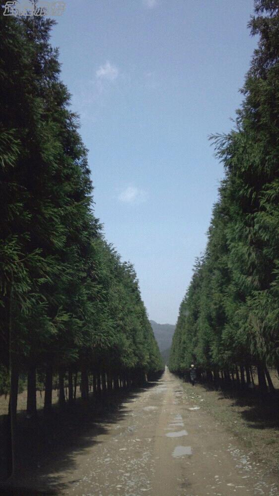 下到谷底了,没想到路两边整齐地栽种了两排高大的树木,象夹道欢迎我们一样,好有迎宾的感觉啊。