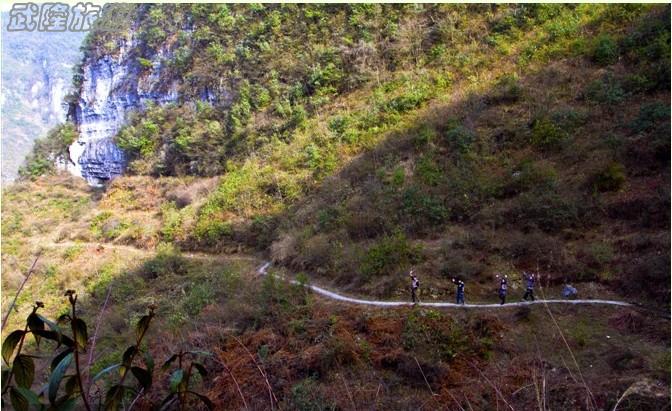 问了路,便向“核桃乡”驶去,约十多分钟后到达“核桃乡”(乡镇修路主道被封,车子要绕道右行到看“武隆印象”的公路约百余米后再绕小路回到乡镇路上来),继续向前,此时水泥路已变成了土路,一路颠簸。不一会儿就到了标识着梦幻谷的路口了。