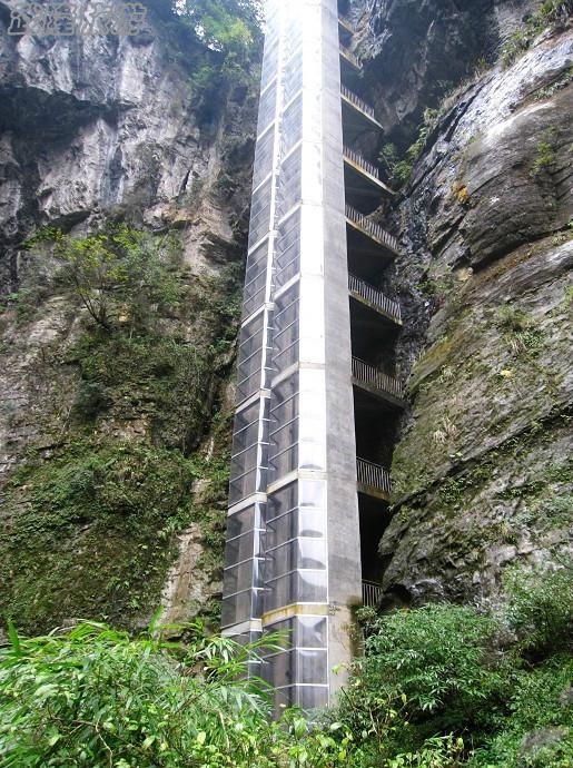 大巴到天生三桥景点入口需要10分钟左右的车程,期间游客的私家车不可以通过。之前就在网上目睹过80米的电梯的照片。这次我们也不例外的乘坐一次。