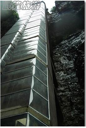 拿着票才能坐这个观光电梯下到天坑底。也没别的路。必须坐电梯早上9点。我进景区时。估计还没一个游客。