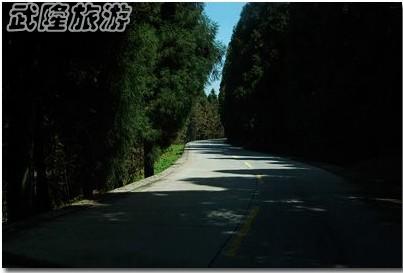 从大门进山以后还走了很长一段这样的路。太阳很大。但是不热。
