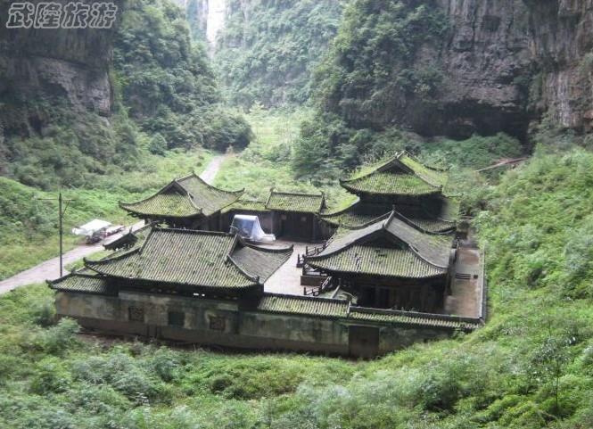 吃过中午饭,我们来到了令我叹为观止的天生天桥。来到这个景区的入口,我们就乘坐高235米电梯一直向下,来到了天坑的坑底。 站在坑底,仰望周围斧砍刀劈似的山崖,我不得不佩服大自然的神奇。所谓的天生三桥指的是“天龙桥”“青龙桥”“黑龙桥”。三座桥和周围寸草不生的岩石构成一个大大的天坑。行走在坑中的崎岖的山路和坑底蜿蜒的石板小路,我们感受到了险、幽、奇。过了天龙桥,来到电影《满城尽带黄金甲》的唯一外景拍摄地——天福官驿,望着四合院似的古驿站建筑,配着大屏幕播放的惊心动魄的电影场景,给人以身临其境的感觉。步行在驿站周围都觉这是绝佳的世外桃源。穿过幽深的掺和着水滴落滴答的带有点恐怖气息的黑龙潭后,我们乘坐观光电车来到了天坑的出口,结束了我们这次的武隆地心之旅。遗憾的是“龙水峡地缝”景区不在我们这次澳网官方网站的安排之中。那又是大自然怎样神奇的杰作呢?期待有机会能见见。