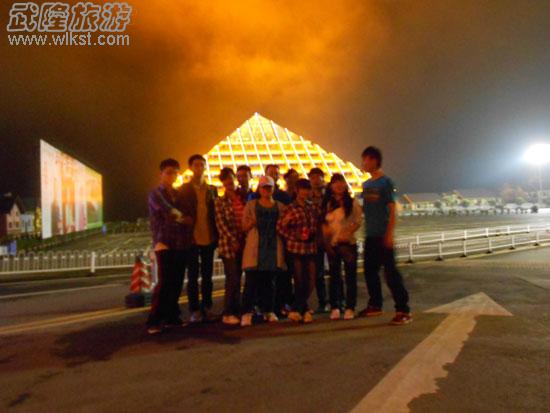 我们坐轻轨过去北站,由于我们票买的晚了,只剩下站票了,卫锅,佳霖,浩子,倩儿爷挤一个车厢,丹妹子,王西西,彭婷婷挤一车厢,我,耀子,川子,老公挤在同一车厢。再数了几十遍的绵羊后,武隆终于到了。到了武隆已经是9点多了,在门口小饭馆吃了一碗米粉,味道还是不错的。耀子到了武隆没有立即回家,招呼我们吃饭,帮我们与司机砍价,最后没有谈妥,耀子从别处打电话叫来一辆车,终于在12点左右时候我们踏上了去仙女湖的路。半夜12点大家坐车走在盘山路上,这还是第一次,外面雾气浓浓,城市灯光慢慢由清晰可见呈为一道光棒。我们没有了睡意,一曲歌曲吊起了大家的兴致,我们一起高歌,一起嘶喊。现在唱起歌来是如此的放松,如此的动听。