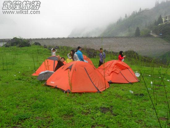 这是第二天早上拍的,晚上忙的扎营和犒劳肚肚都忘 了拍照了。这就是我们的营地。(因为我们是第一次来,晚上来了,我们根本不知道周围有什么,什么地形,早上起来才有幸尽收眼底)