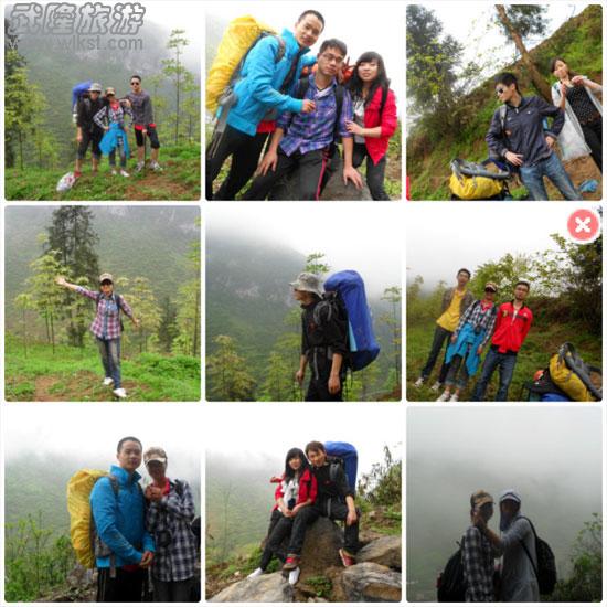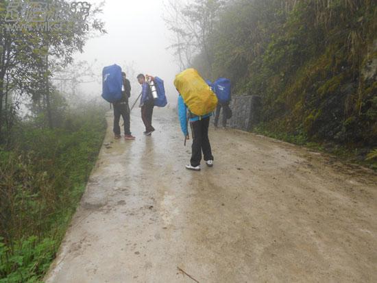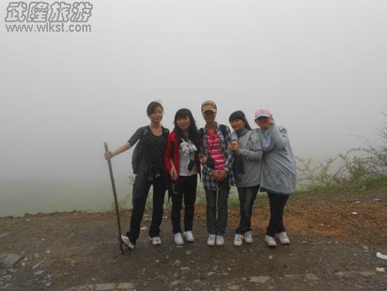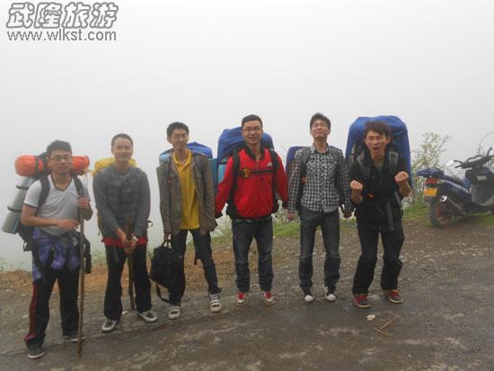 大雾之中开始出发,左起佳霖,卫锅,老公,川子,耗子,我。