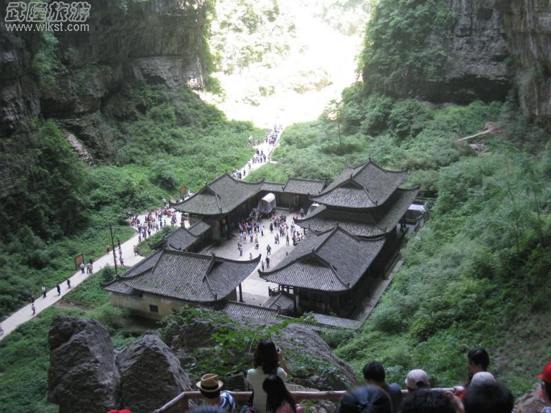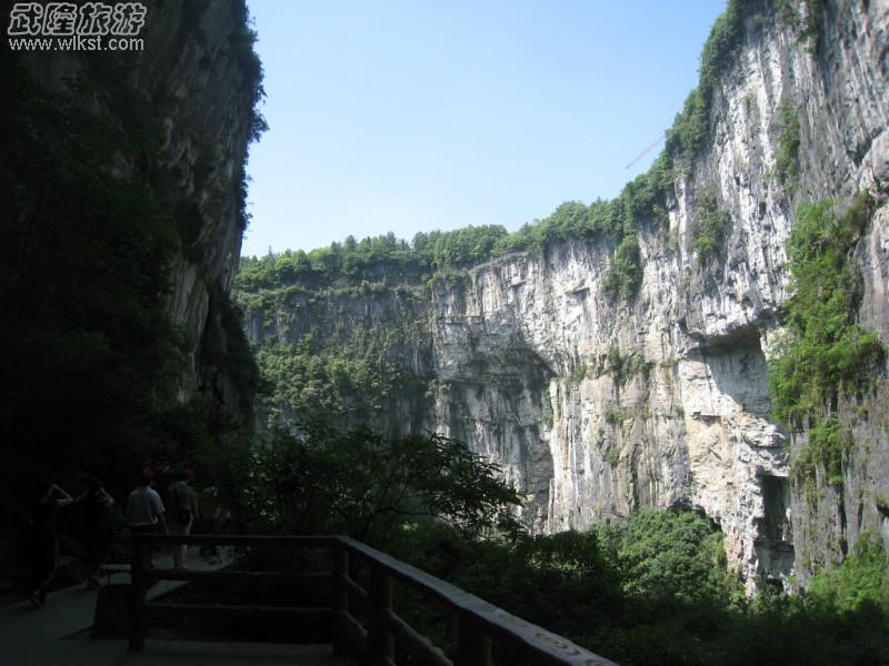 武隆第一站,天生三桥。走在寻常的林荫道上,不经意探身一看,却是四面绝壁!大家顿时来了精神,都道是练功的好去处!