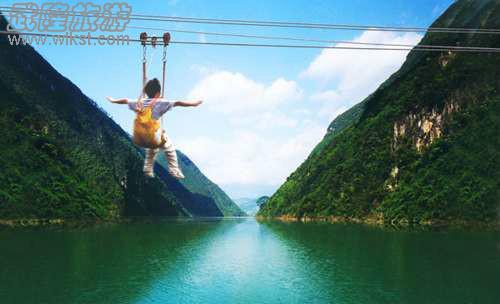 第二天游完芙蓉洞去芙蓉江速滑了,说是最长的过江速滑,不过可能体重不够给力,轻飘飘就过去了,不够“速”,幸而还是能够“领略自然、感受飞翔”。自己的照片没扫出来,借的张网上的,想说的是江水确实有这么靓!