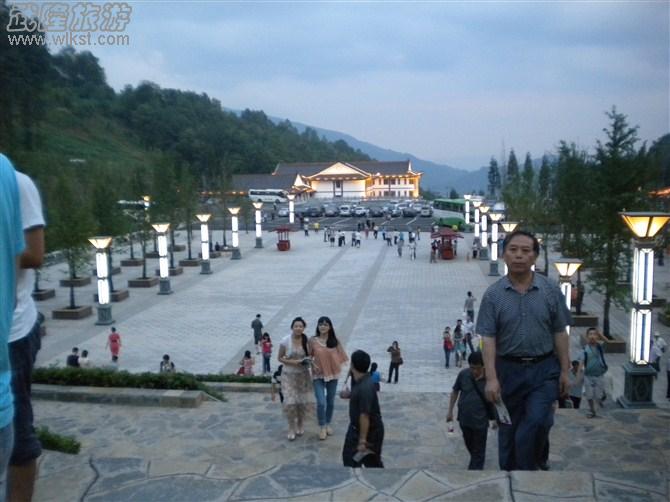 到达的时候已是傍晚。天色有些昏暗,加上山中雾气弥漫,广场上的灯便早早地亮起来了。