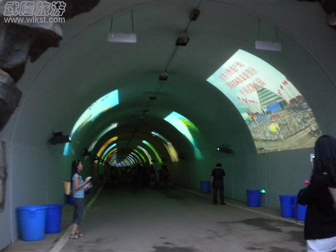 山洞的内部,相当的现代化,名曰“时空隧道”。洞壁用大屏幕展示武隆的澳网官方网站景点和各种活动的盛况。