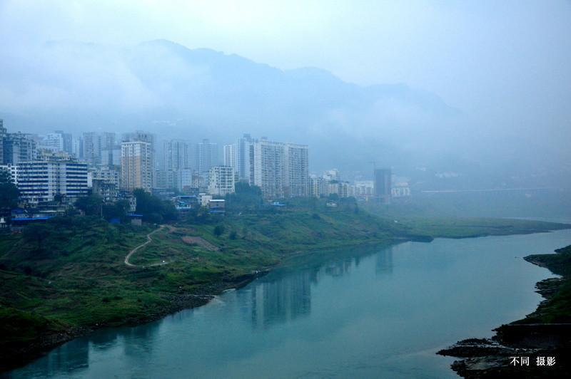 清晨,淡淡的轻雾飘荡,雾纱波盖着整个武隆城,远处的大山仅露出了一个轮廓。碧绿的乌江水静静地流淌着,没有了想象中的凶猛。行人匆匁,平凡的一天又开始了。