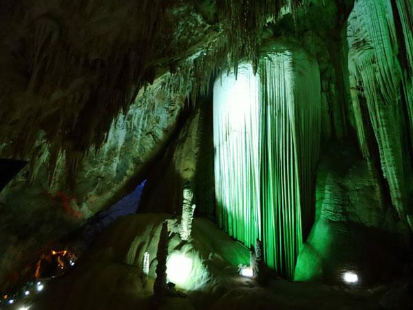 第二天早上我们早早的就起来了,前往芙蓉洞游玩。芙蓉洞是我们这次去仙女山澳网官方网站景点之一,它位于重庆武隆县江口镇芙蓉江入口处.芙蓉江是乌江的一大支流,放眼望去,江水碧绿,山青翠.它仿佛是一条浅绿色的绸缎环绕在洞的周围,更透出了大自然灵秀之美! 芙蓉洞是一个大型石灰岩洞穴,生成年代约在60万年至100万年之间,初探结果,芙蓉洞主洞长2700米,总面积3.7万平方米,其中“辉煌大厅”面积1.1万平方米,最为壮观。洞中主要景点有金銮宝殿、雷峰宝塔、玉柱擎天、玉林琼花、海底龙宫、巨幕飞瀑、石田珍珠、生殖神柱等。芙蓉洞内钟乳林立,种类繁多。所到之处光影变幻,更突出了洞内景致的神奇。这些千姿百态的钟乳石,或辉煌壮观,或玲珑剔透,其造型之丰富,可算芙蓉洞的第二奇。洞内最让人唏嘘的是随处可见的石柱群,这些高25米至30米的玉笋玉柱,洁白如玉,经或红或黄或绿的灯一射,单看如九天玉柱,群观如仙山琼阁,穿行其间,分明就成了桃谷仙人。洞中有一石瀑布,侧看如瀑,正看如幕,高20余米,宽15米,折叠深度在1.5米以上,令人叹为观止。芙蓉洞里镇洞之宝可算是命名为“瑶池双塔”的水下方解石晶花,这个景点天然成一池,约30平方米,深约1米,池中的晶花形似珊瑚,色如玫瑰,呈带状层层分布水面,高低两座钟乳石笋,点缀在晶花之上,如两座玉塔,有画龙点睛之妙。难怪,芙蓉洞被堪称为“中国最美丽的洞穴”、“天下第一洞”的神奇美誉!到此一游,果真名不虚传,芙蓉洞真的是一座斑斓辉煌、内容丰富的“地下艺术宫殿。”