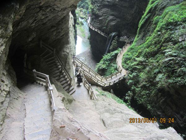 我们的第一站来到了武隆县的江口镇,游览了美丽的芙蓉江。芙蓉江的水绿如玉,清见底,静不见水纹,怒可掀磐石;芙蓉江的峡谷,陡直威严,是典型的V字峡谷。原始植被密植两岸,泉水瀑布高挂飞流,令峡谷显出一个秀字来;芙蓉江的山峰,奇特伟岸,或群重酷似伟人,或单立如笋直入云峰,叫人思绪万千。晚上品尝了武隆的特色菜纯天然的“乌江鱼”,味道之鲜美,细嫩、柔滑、吃在嘴里那就一个字“爽”。