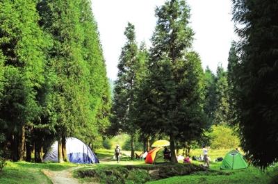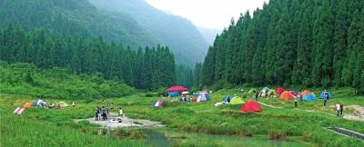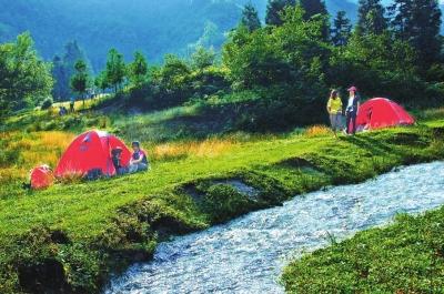 梦幻谷内平坦如茵,草场面积达3000余亩。在这无垠的草场中间,一条清澈的溪水欢流其中。因此这样曼妙的风景,被广大的驴友奉为了他们心中的露营圣地。他们带上帐篷,邀上好友,或开车,或步行,或骑着摩托……选着不同的方式来“朝拜”他们心中的圣地,梦中的天堂。