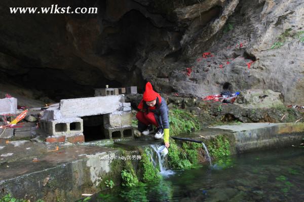 池中水源于池边的一个洞口,山泉水颤颤地从洞中流出,汇集在池塘。贴心的当地村民放了一个搪瓷杯在洞口,方便来往行人饮水解渴。