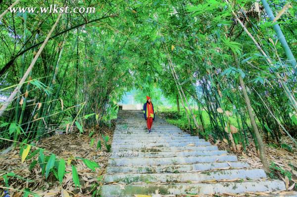 登岸左行,是一片葱郁竹林。一条台阶将竹林一分为二,两边的竹却奋力向内生长,直至连城一个天然的绿色穹顶。