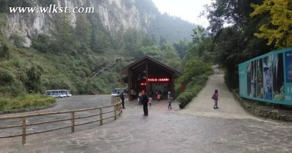 走出谷底,眼前豁然开朗,沿景区车道可去出口。实际上,能开行小汽车的山道并不陡峭,也不漫长,步行向上不过十多分钟。车站的尽头,又是两岔,一边是等待着我们的大巴车的停车场,另一边不远就是著名的另一处景点,龙水峡地缝。虽然久有向往,无奈车上不断催促。混在旅行团里的游客是没有资格不服从导游的,虽然导游在路上已经霸占了我们近两个小时的宝贵时间。不得已放弃了游览地缝,上车前往芙蓉洞。看来下回还要来一次自由行才好。