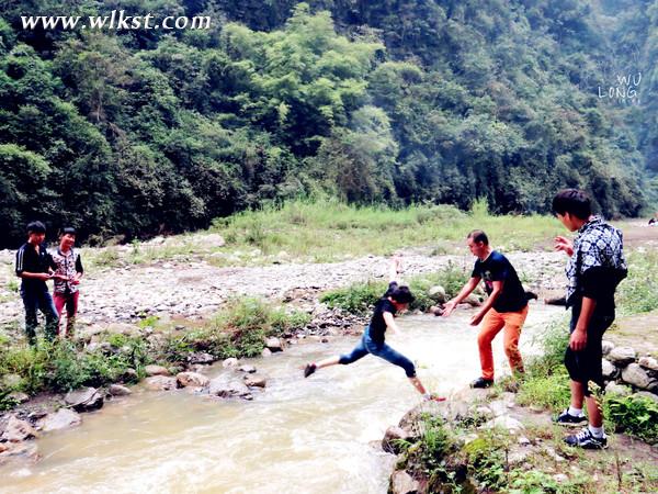 这就是那几个年轻人在这里跨这个电站出来的水流,真的是奋力的跳,稍有偏差都会跌入水里的。建议还是绕行几步,不要轻易模仿。