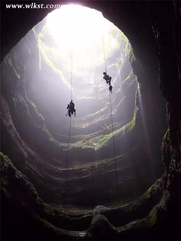 我们到达后坪天坑的边缘,不敢轻举妄动。因为到处都有坠崖危险的提示牌。顺着一脚宽的田埂,手抓着小树,战战兢兢地蹭到坑边,向下一看,浑身发紧,后脖子发凉,眼前就是万丈深渊,再有半步就万劫不复。异口同声地说:“太危险,往回走。”我们顺着漆黑的山路开夜车,很不舒服,胳膊肘弯很多,回到武隆县城已是深夜。