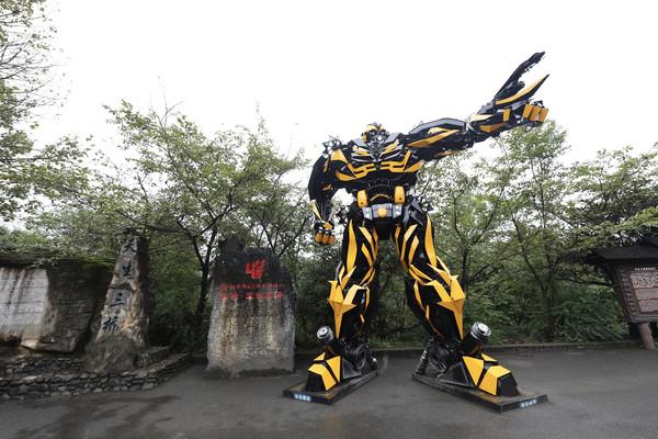 一到天生三桥的门口,这里屹立着一个巨大的大黄蜂,我站在他的下面,显得自己实在太瘦了。