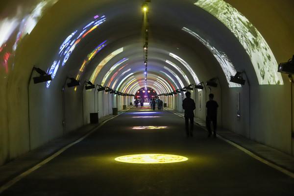 剪完票之后,将会来到一个时光隧道。里面展现了一些以前纤夫的老照片,还有一些风景的照片。看着墙上的照片,感觉自己就像在时光机里穿梭一样。