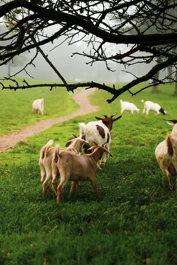 羊,马在仙女山上无忧无虑的吃着草。