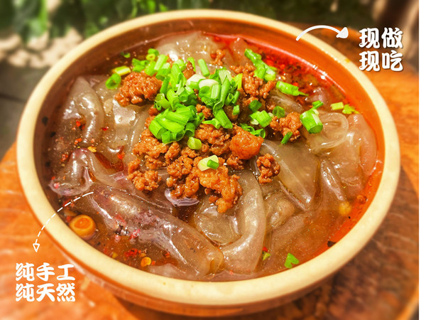 在羊角古镇,有机会一定要品尝一下这个手工苕粉。真的是超级好吃。