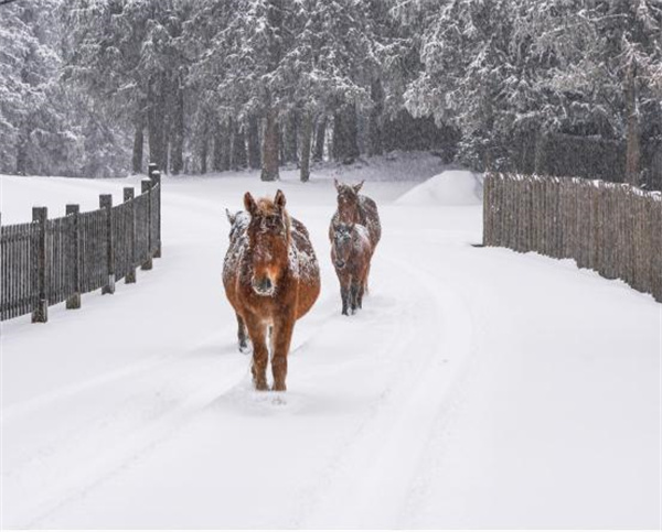 仙女山的雪,有北国的豪迈,也有南国的柔情。草原与山峦相接的雪景,美翻了这个季节的每个角落,铺满白雪的草原,尽展千里的苍茫。雪花飞舞于山峦、林间,马儿在雪中悠然行走,仿佛一张张天然水墨画,美不胜收。