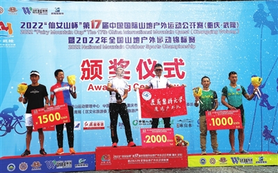 11月3日,2022“仙女山杯”第十七届中国国际山地户外运动公开赛(重庆•武隆)暨2022年全国山地户外运动锦标赛进入第三赛段,04号组队获得男子双人组第一名、21号组队获得女子双人组第一名、34号组队获得混合双人组第一名。