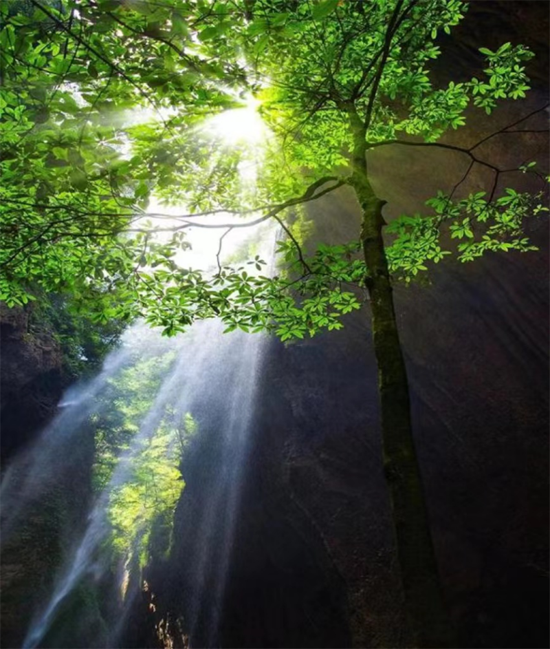 阳光在龙水峡地缝的每个裂缝中散落……让人感觉有一种新生的力量,当穿过一条隧道进入峡谷,仿佛进入了另一个世界。带着这份力量前行,我们终将走向理想世界。