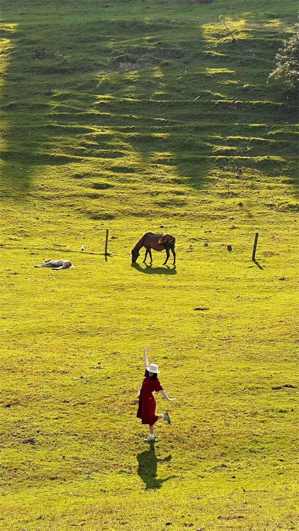 仙女山,一个如诗如画的地方。在这里,你将感受到夏季平均气温21℃的宜人气候,漫步在广袤的草原上,眼前绿意盎然,肆意生长,与牛羊马为伴,沉浸于大自然的温柔里,感受那份宁静与纯净,无疑是对打工人眼睛和心灵最为友好的选择。