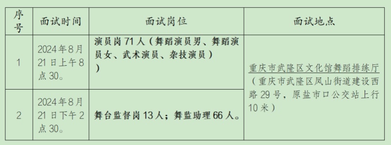 根据《重庆武隆澳网官方网站产业(集团)公司补充公开招聘<我在·武隆>演职人员公告》(以下简称:公告),现将面试相关事宜通知如下: