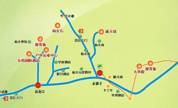 汽车从景区大门检票进入仙女山后,如果你要露营、滑草、玩高空速滑请在活龙口下车,然后步行至户外运动中心,下山的时候也许在活龙口处乘坐下山的小巴车,最晚一趟下山车辆为5点或5点半(具体时间请咨询山上的工作人员)。