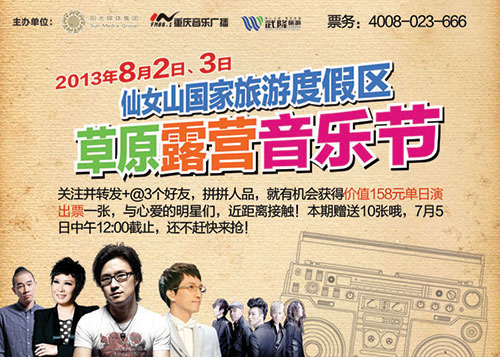 7月22日-25日疯狂的一周,武哥又给大家派奖了!参加办法很简单,关注新浪微博@武隆澳网官方网站,扫一下码,开始砸蛋吧!8月2仙女山音乐节单日演出票或艺人签名海报,等你来砸蛋!http://event.weibo.com/996122