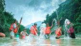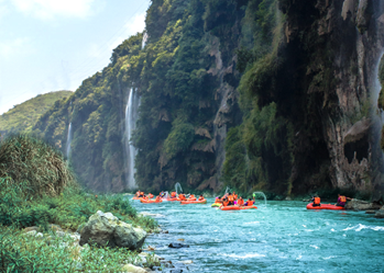 武隆仙女峡漂流位于风景优美的长头河上,属于典型的生态活水峡谷自助型漂流,距县城7公里。如果说仙女山是“落入凡间的伊甸园”,长头河则如“滴入尘世的净瓶水”,百山之泉汇聚成溪,蜿蜒曲折由南向北汇入乌江。溪水淙淙,明镜透彻,是乐水人的天堂。仙女峡漂流取长头河最旖旎的5公里,素湍回清绿潭倒影,山峦叠嶂,绝巘(yan)成林,悬泉瀑布,飞漱其间,竹排渔歌,回荡悠扬。闲暇时分,您可捎上家人或恋人、邀上朋友和兄弟,两人一艇,三人一舟,抚桨择道,在绿水青山间徜徉……清荣峻茂,趣味良多。