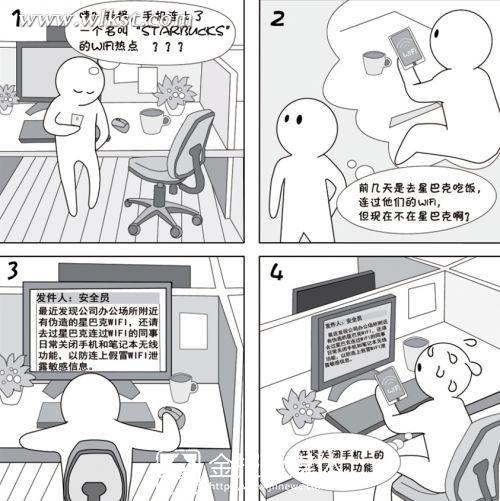 一些手机在搜索到不是同一个WiFi热点但名称相同的WiFi时,也会自动使用保存的密码连接,这就给黑客以可乘之机。