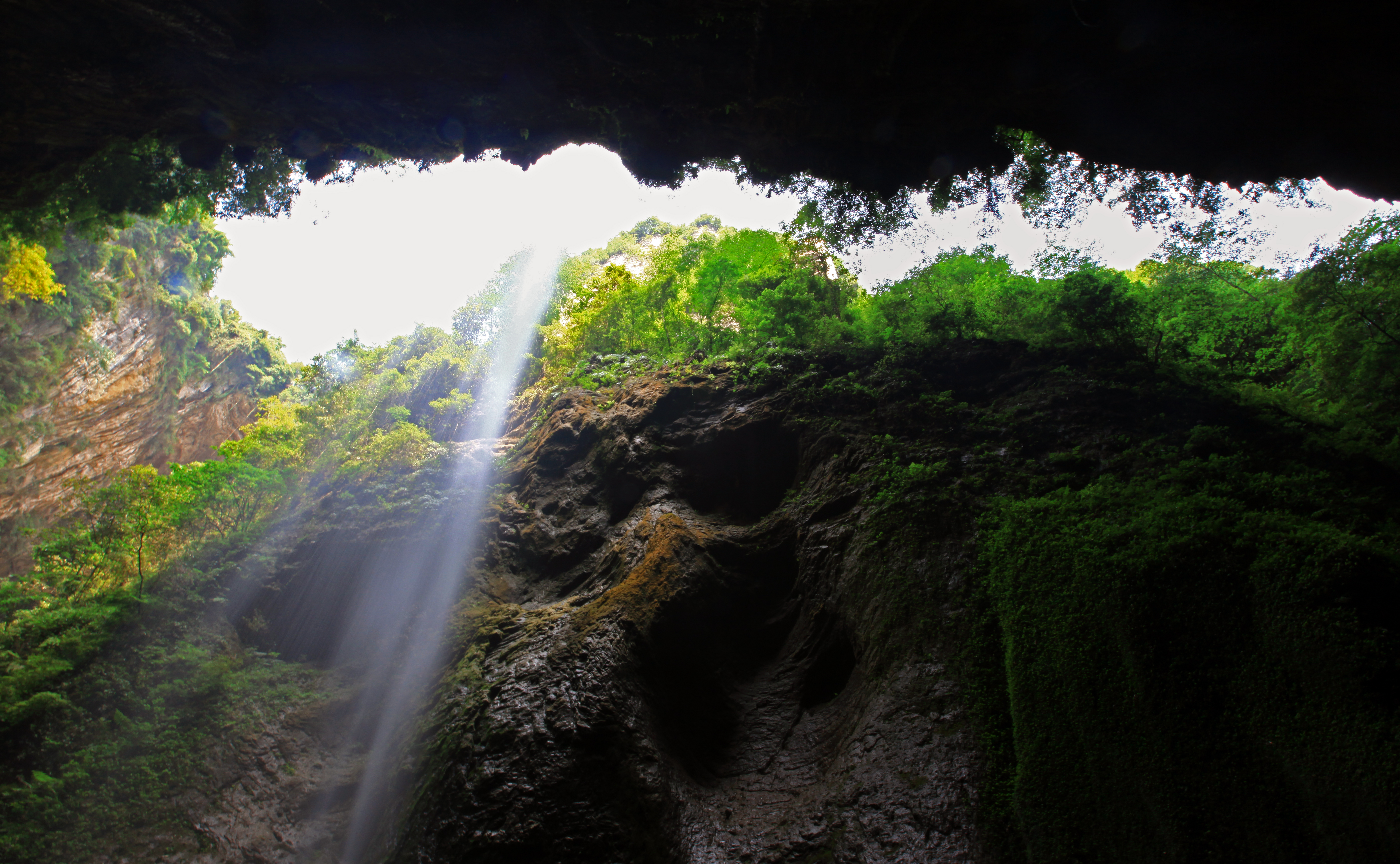 Longshuixia Fissure Gorge, which came into being in the orogeny tens of millions of years ago, is located in Wulong county, Chongqing municipality, southwest of China. It is a typical karst landscape associating with orogenic movement. Five kilometers length and five hundred meters depth make it a magnificent and fantastic valley, which has a steep cliff, original vegetation and stream waterfalls etc.