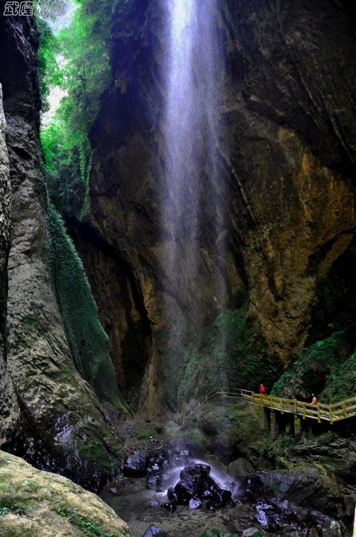 拥有地球裂缝之称的龙水峡地缝,全长4公里,地缝景区设有80米高的瀑布水帘,地缝中老树藤萝盘绕,泉水流瀑桂壁,险峻幽深。明涧湍急。