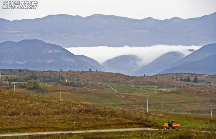 资料记载仙女山冬季长,上年11月至来年2月属有雪期。4月份的仙女山,虽未下雪,但感觉冬季并未完,非常寒冷,一天大部分时间是霜雾笼罩,能见度低,难见仙女山的美丽到容颜。