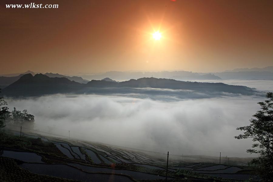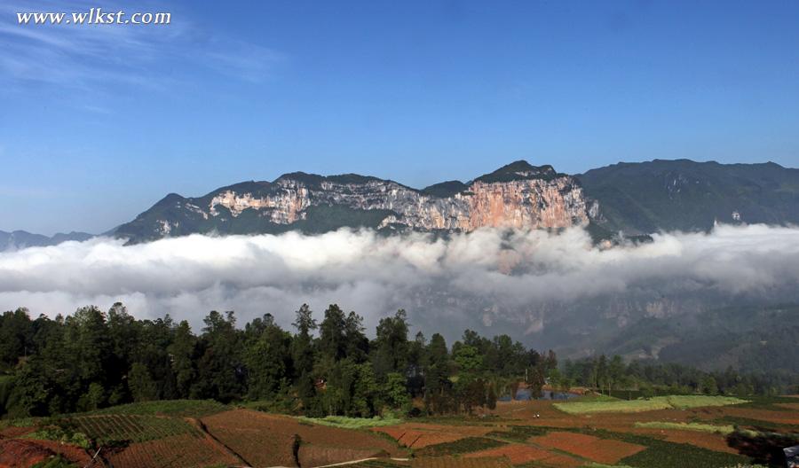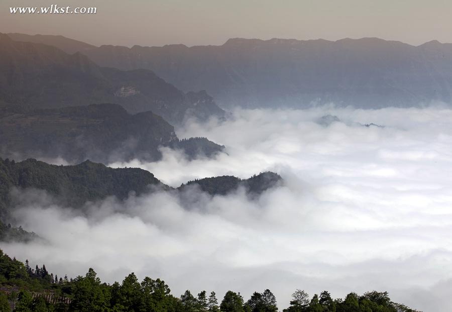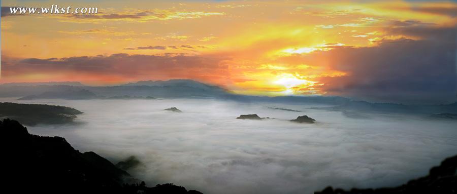 雾山云海是武隆经常可见的景色,特别是夏天的5-8月份,时而滚滚云海翻腾飞跃,将青山吞没;时而座座青峰又隐现于虚无缥缈的云山之中。特别是霁雨初晴,青山滴翠,冉冉升起的红日映照着白絮般的云海,丛丛峰林浮露于滚滚的云海之上,就象散布在大海中的瀛洲仙岛。