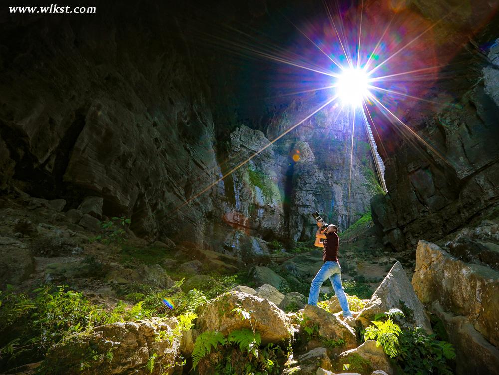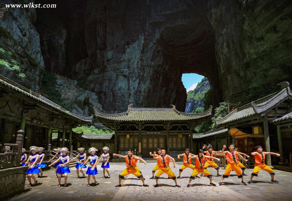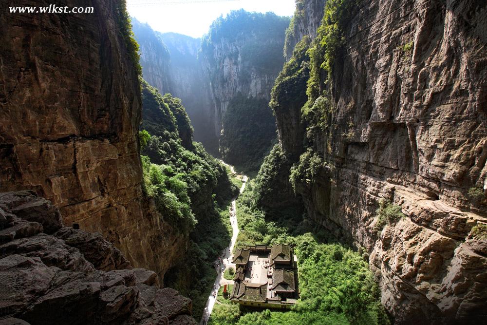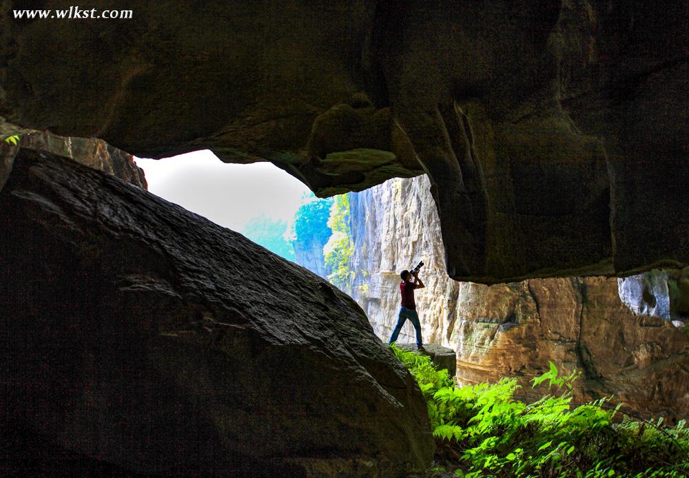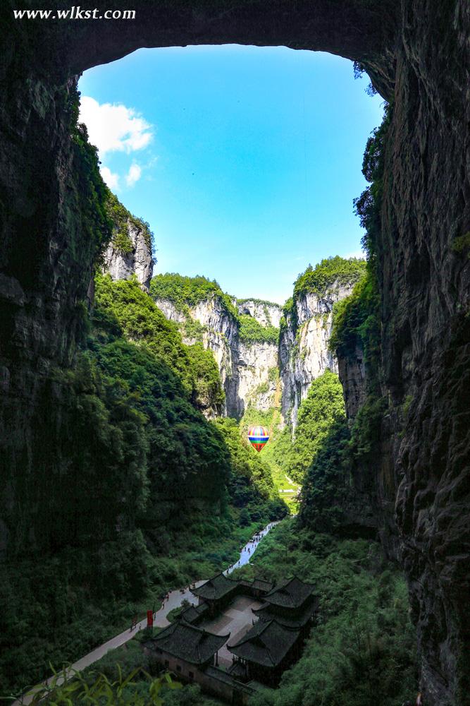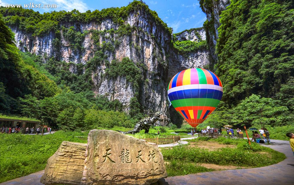 天龙桥顶天立地,桥高200米,跨度300米,因位居三桥第一,犹如飞龙在天,故而得名“天龙”。倍受关注的世界最大单块玻璃观景眺台便在天龙桥顶,踩着玻璃看200米深的坑底景色,十分震撼。天龙桥下另有天生坑,坑内又生洞,且洞洞相连恍如克里特岛上的米诺斯迷宫,令人倍感神奇。乘坐80米升降电梯数秒钟内到达坑底,天坑内罕见的峡谷风光及喀斯特原始森林便呈现在眼前,其雄、奇、险、秀,让人目不暇接。