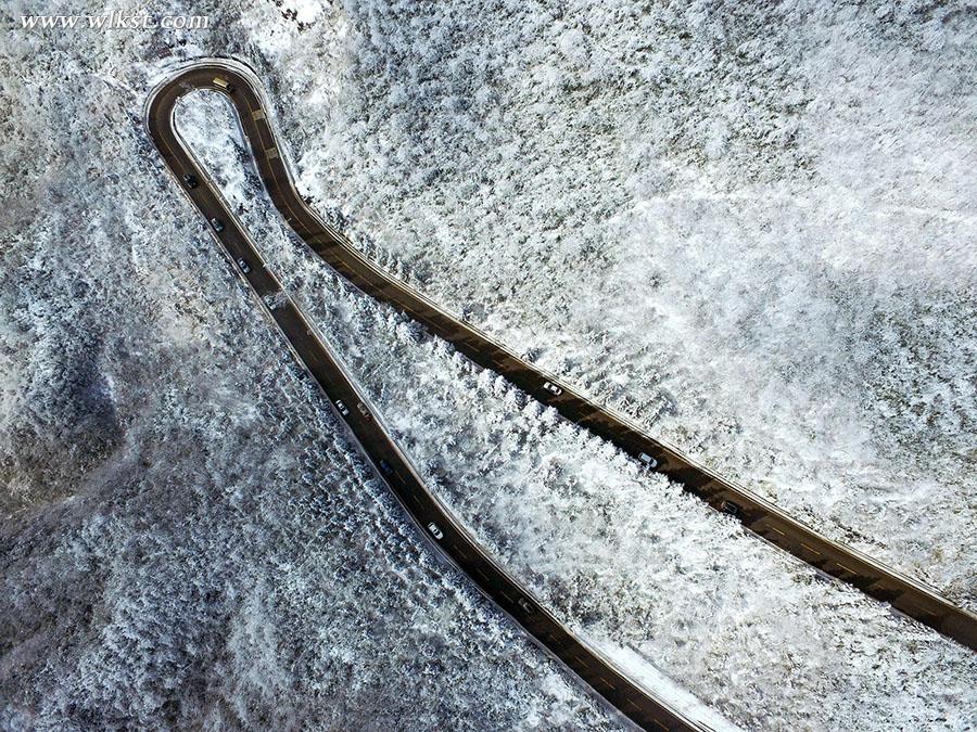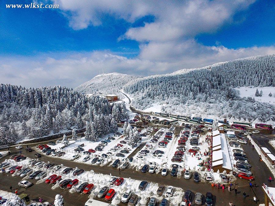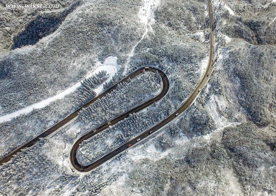 南国风光,万里雪飘,大雪后的仙女山银装素裹,分外妖娆。在蓝天和阳光的映衬下,宛如童话世界,在航拍画面中显得格外壮美。