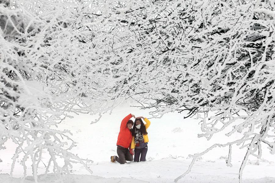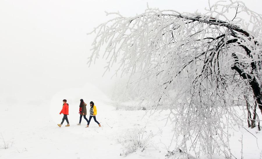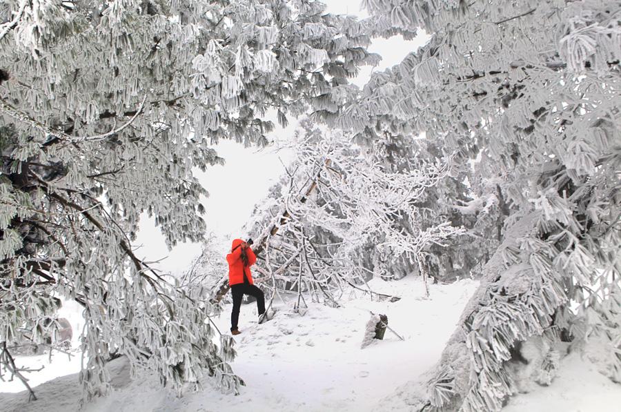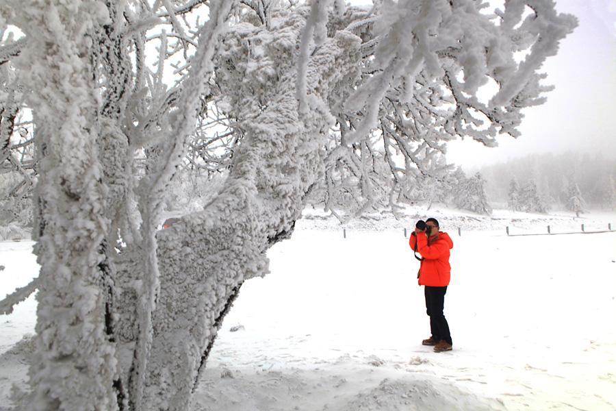 冬季,是属于仙女山的冰雪童话和情怀。大雪时候,茫茫林海银装素裹,连绵群山舞动银蛇,幽兰碧白,晶莹剔透。(摄影--王俊杰)